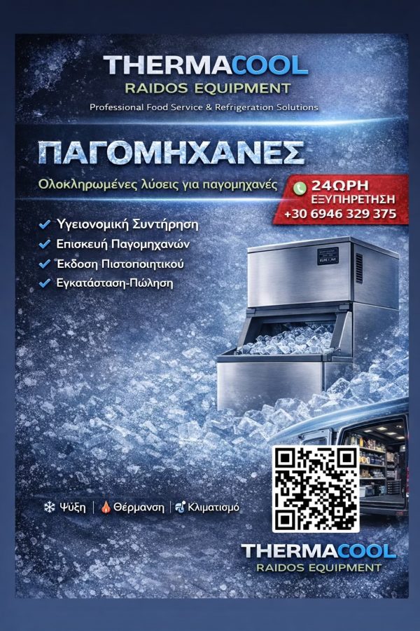 Η Thermacool αναλαμβάνει την επισκευή, συντήρηση και πλήρη τεχνική υποστήριξη παγομηχανών για επαγγελματικούς χώρους (café, bar, εστίαση), προσφέροντας αξιόπιστες λύσεις με στόχο τη σωστή λειτουργία και την παραγωγή ποιοτικού, διάφανου πάγου.